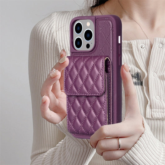For iPhone 14 Pro Max Vertical Wallet Rhombic Leather Phone Case(Dark Purple)Regular price $19.00 USDRegular priceUnit price per-