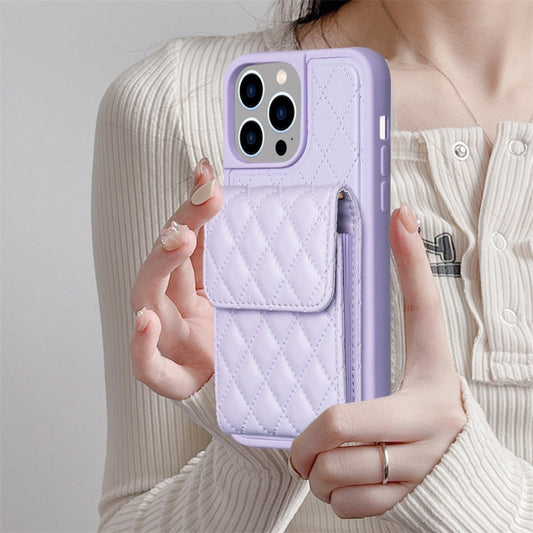 For iPhone 14 Pro Max Vertical Wallet Rhombic Leather Phone Case(Purple)Regular price $19.00 USDRegular priceUnit price per-