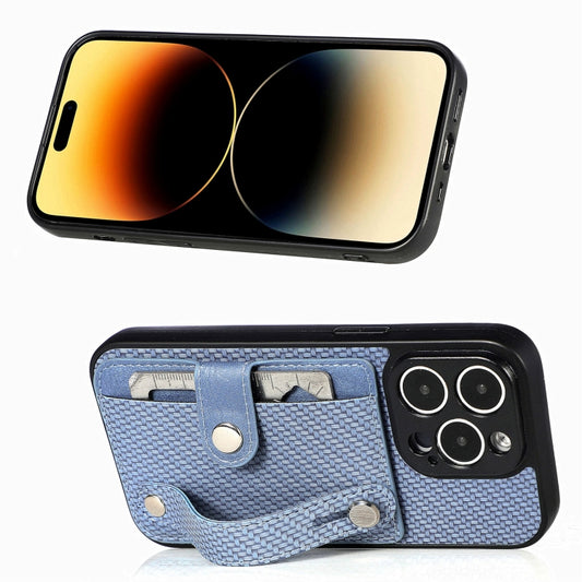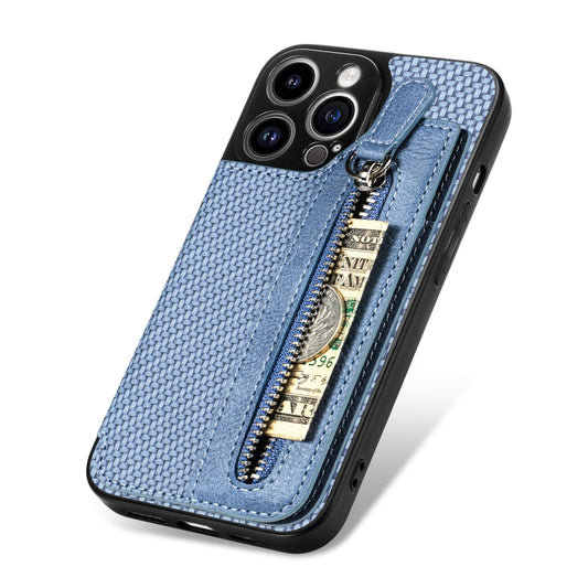 For iPhone 14 Pro Max Carbon Fiber Horizontal Flip Zipper Wallet Phone Case(Blue)