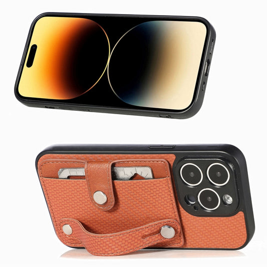 For iPhone 14 Pro Max Wristband Kickstand Card Wallet Back Cover Phone Case with Tool Knife(Brown)Regular price $14.00 USDRegular priceUnit price per-