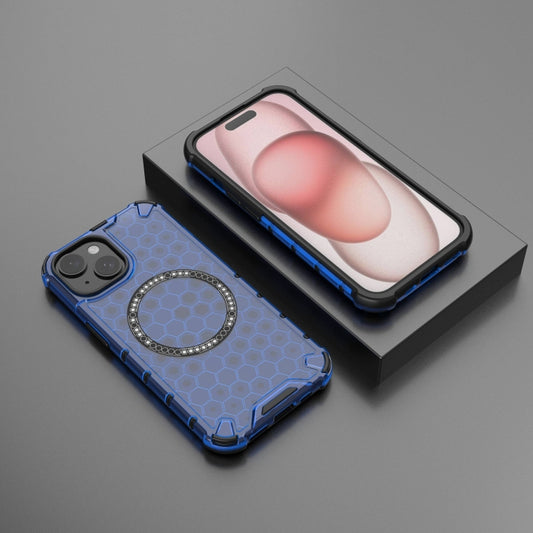 For iPhone 15 Honeycomb Magnetic Ring Shockproof Phone Case(Blue)