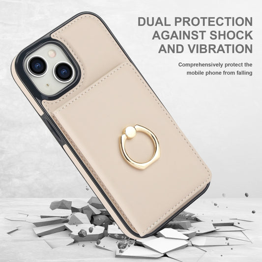 For iPhone 15 RFID Anti-theft Card Ring Holder Phone Case(White)