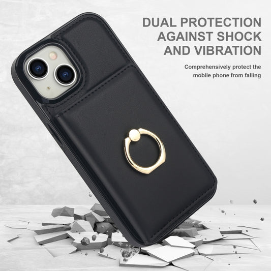 For iPhone 15 RFID Anti-theft Card Ring Holder Phone Case(Black)