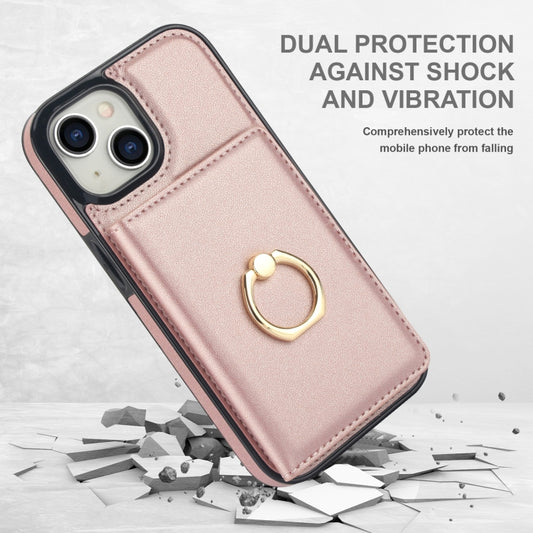 For iPhone 15 RFID Anti-theft Card Ring Holder Phone Case(Rose Gold)