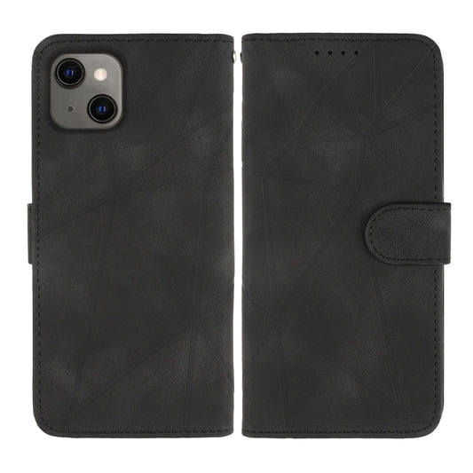 For iPhone 15 Skin Feel Geometric Lines Leather Phone Case(Black)