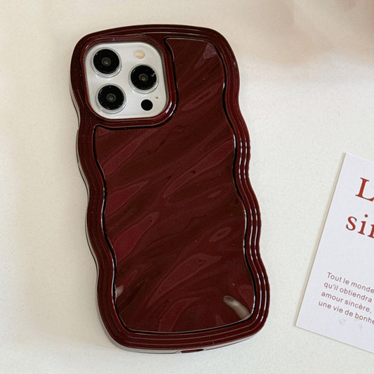 For iPhone 15 Solid Color Waves PC Hybrid TPU Phone Case(Wine Red)