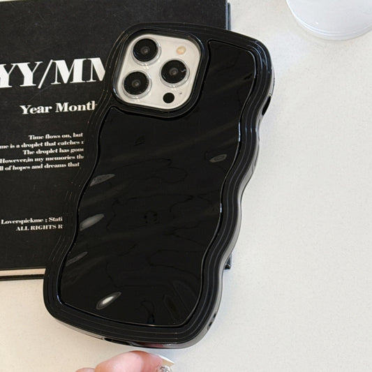 For iPhone 15 Solid Color Waves PC Hybrid TPU Phone Case(Black)
