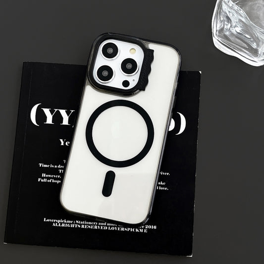 For iPhone 15 MagSafe Colorful Wavy Circle PC Hybrid TPU Phone Case(Black)