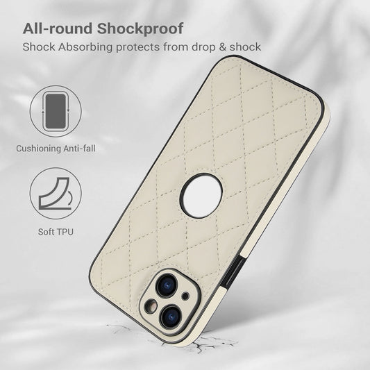For iPhone 15 Rhombic Leather Back Cover Phone Case(White)