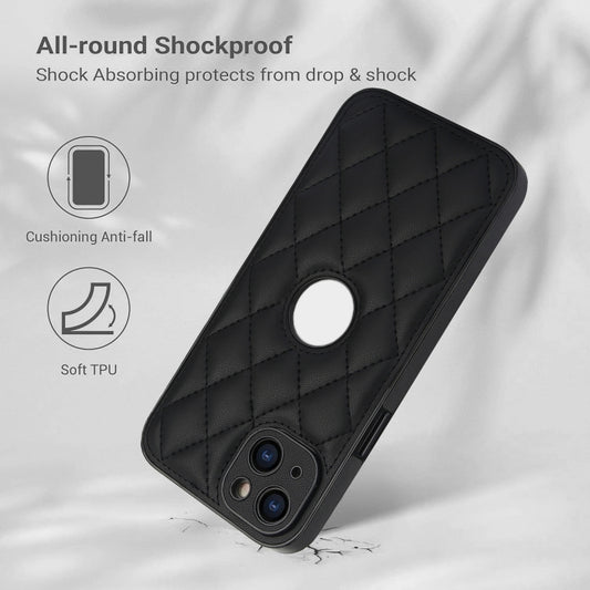 For iPhone 15 Rhombic Leather Back Cover Phone Case(Black)