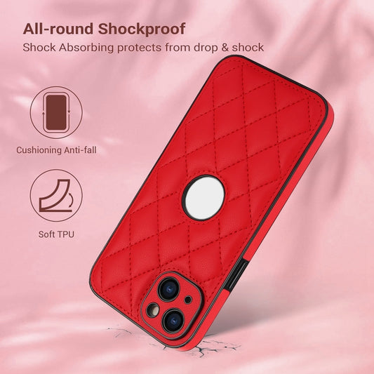 For iPhone 15 Rhombic Leather Back Cover Phone Case(Red)