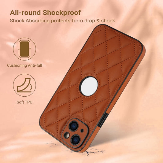 For iPhone 15 Rhombic Leather Back Cover Phone Case(Brown)