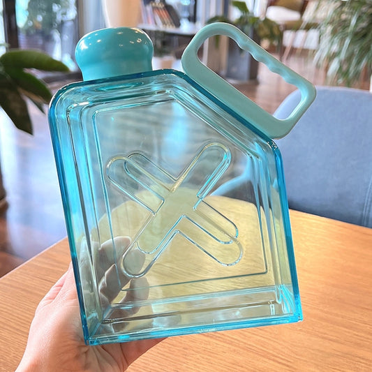 Square Fitness Sports Large Capacity Plastic Water Cup with Handle(Blue)
