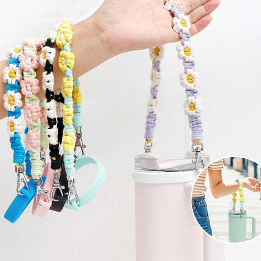 For 8-40oz Portable Sports Water Mug Lanyard Cup Cover Hand-Woven Cute Daisy Mug Strap(Khaki)