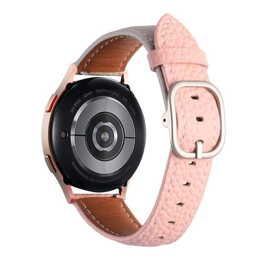 20mm Litchi Texture Square Buckle Genuine Leather Watch Band(White+Pink)