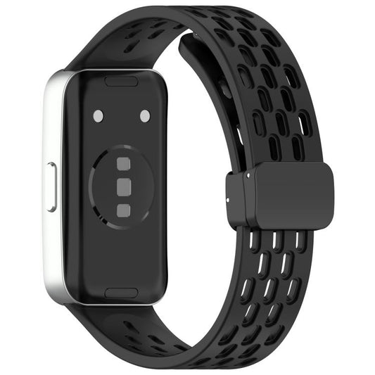 For Huawei Band 10 / 9 / 8 Hole Style Fold Magnetic Buckle Silicone Watch Band(Black)