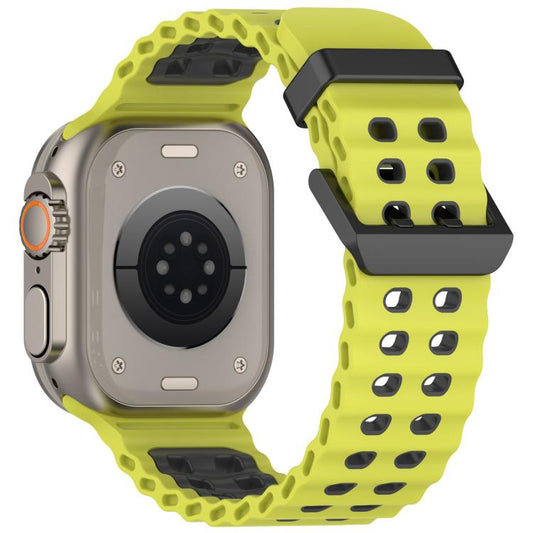 For Apple Watch 46mm / 49mm / 45mm / 44mm Ocean Double-row Hole Two-color Silicone Watch Band(Lemon Gray)