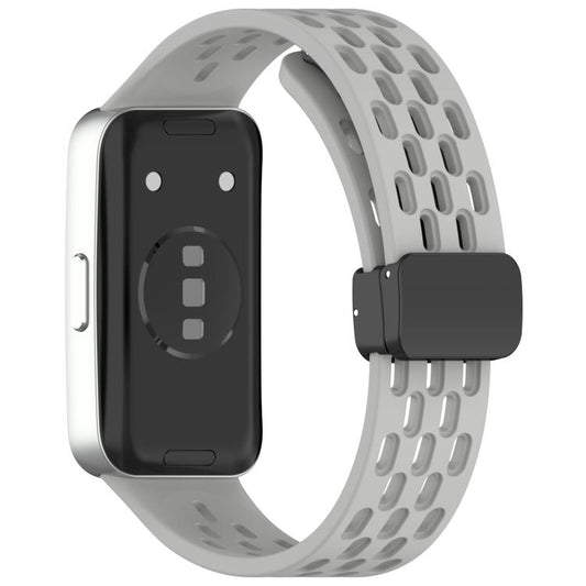 For Huawei Band 10 / 9 / 8 Hole Style Fold Magnetic Buckle Silicone Watch Band(Gray)