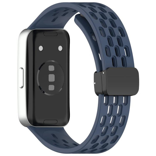 For Huawei Band 10 / 9 / 8 Hole Style Fold Magnetic Buckle Silicone Watch Band(Topa Blue)