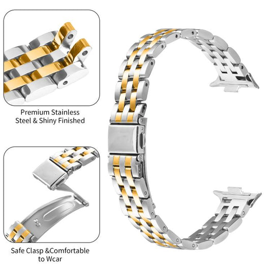 For Fitbit Inspire 1 / Inspire 2 Five Beads Slingshot Buckle Steel Watch Band(Silver Gold)