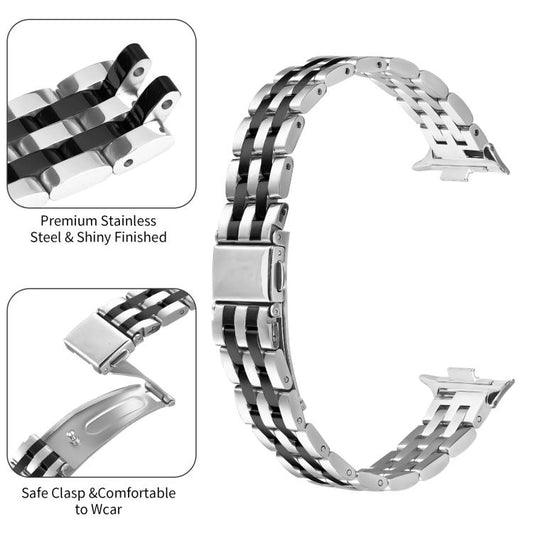 For Xiaomi Mi Band 8 Pro Five Beads Slingshot Buckle Steel Watch Band(Silver Black)