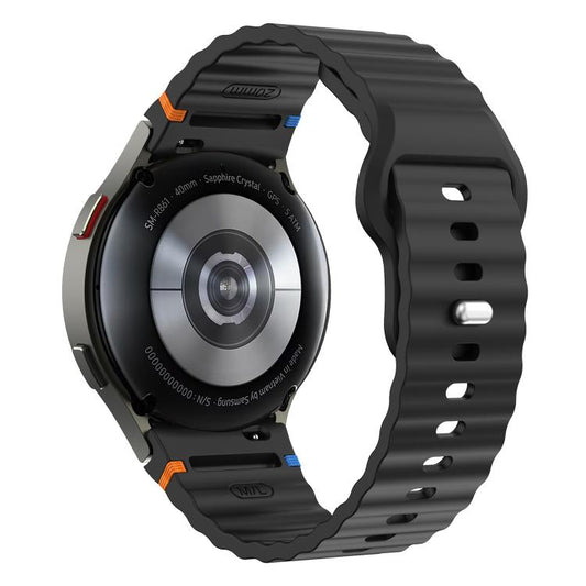 For Samsung Galaxy Watch 7 40mm / 44mm Wavy Grain Stitched Reverse Buckle 20mm Silicone Watch Band(Black)