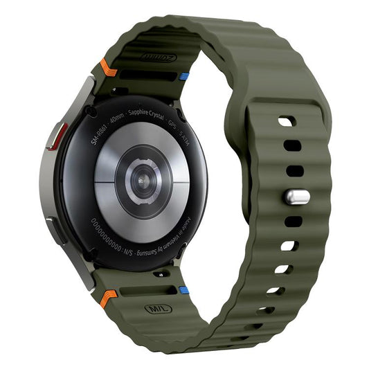 For Samsung Galaxy Watch 7 40mm / 44mm Wavy Grain Stitched Reverse Buckle 20mm Silicone Watch Band(Army Green)