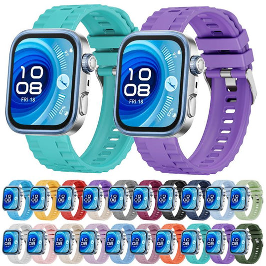 For Huawei Watch Fit4 / Fit4 Pro / Fit3 Metal Head Grain Pin Buckle Silicone Watch Band(Lilac Purple)
