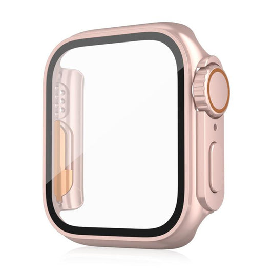 For Apple Watch Series 6 / 5 / 4 / SE 44mm xDfind Change to Ultra 49mm Tempered Glass Film Integrated PC Watch Cover(Rose Gold+Orange)
