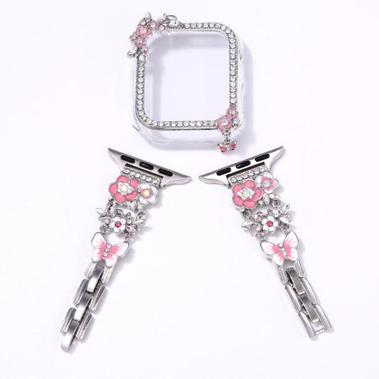 For Apple Watch Series 6 / 5 / 4 & SE 40mm Tassel Flower Single-Diamond Hollow Watch Shell Band Kit(Silver)