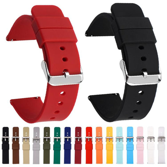 18mm Stainless Steel Silver Pin Buckle Solid Color Silicone Waterproof Watch Band(Yellow)