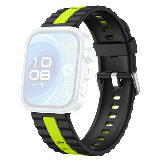 For Huawei Watch Fit 4 Pro / Fit 4 / Fit 3 xDfind Sport Vertical Striped Two Color Silicone Watch Band(Black+Green)