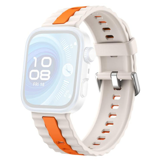 For Huawei Watch Fit 4 Pro / Fit 4 / Fit 3 xDfind Sport Vertical Striped Two Color Silicone Watch Band(Starlight+Orange)
