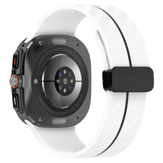 For Samsung Galaxy Watch Ultra 47mm Carbon Fiber Magnetic Folding Buckle Silicone Watch Band(White Black)