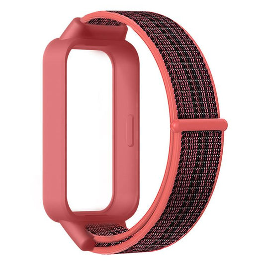 For Xiaomi Smart Band 9 Active / Redmi Band 3 xDfind Plastic Cover Integrated Nylon Loop Watch Band(Red Black)