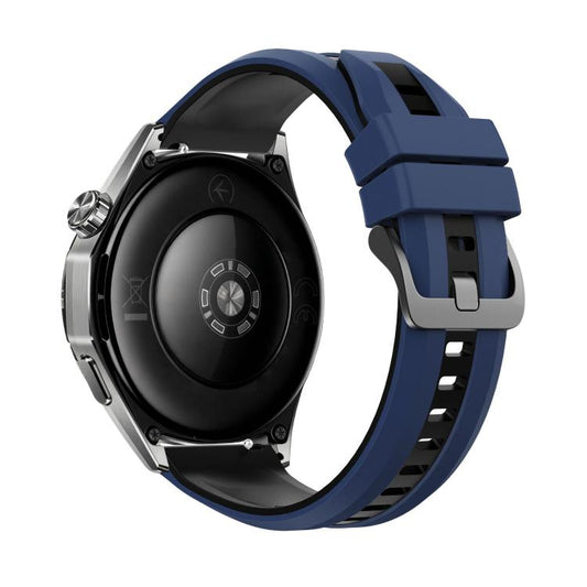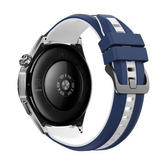 22mm Black Steel Buckle Two Color Silicone Watch Band(Dark Blue White)