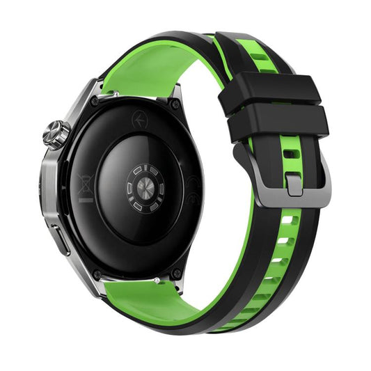 22mm Black Steel Buckle Two Color Silicone Watch Band(Black Green)