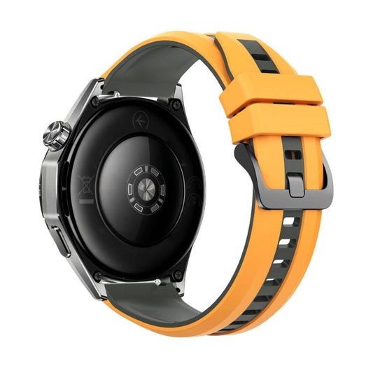 22mm Black Steel Buckle Two Color Silicone Watch Band(Yellow Gray)