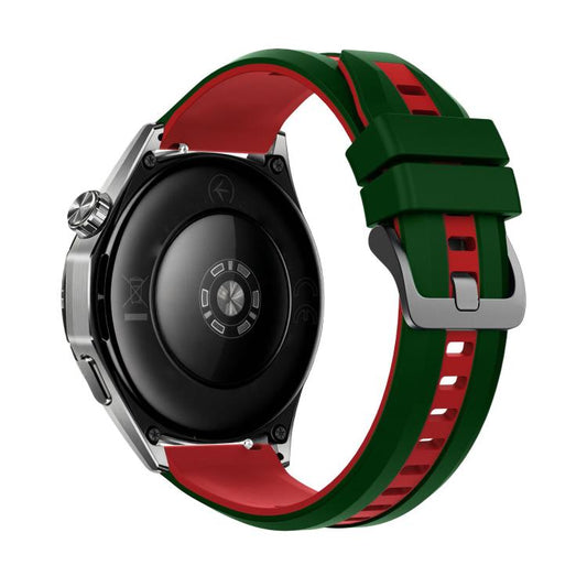 22mm Black Steel Buckle Two Color Silicone Watch Band(Dark Green Red)