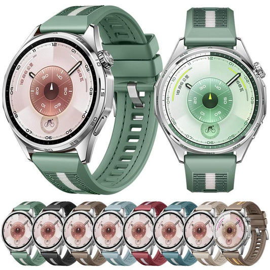 For Huawei Watch GT 6 46mm Braid Nylon Hybrid Silicone Watch Band(Rainbow Khaki)