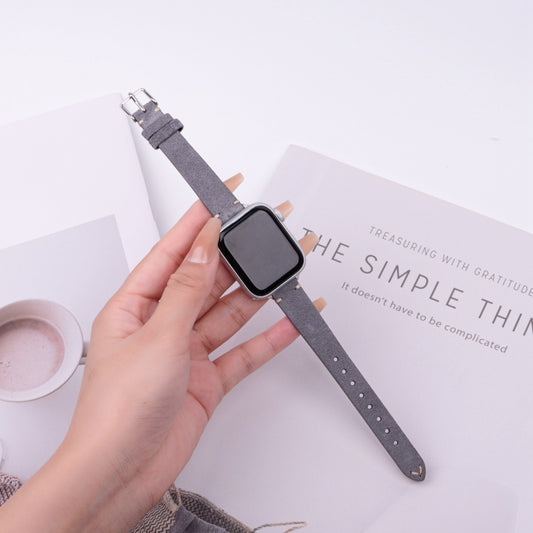 For Apple Watch 46mm / 49mm / 45mm / 44mm Matte Genuine Leather Watch Band(Grey)