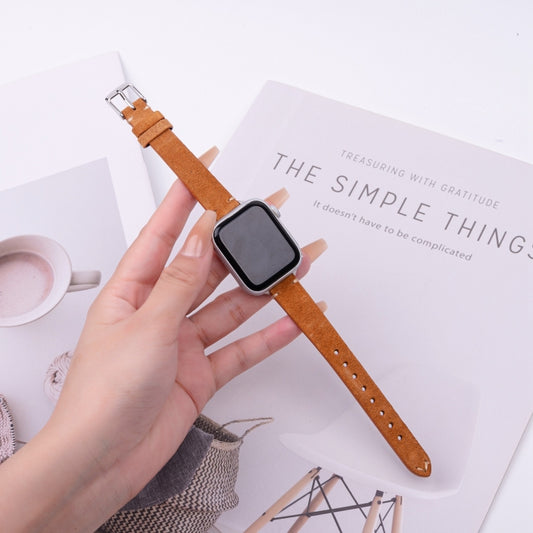 For Apple Watch 42mm / 41mm / 40mm / 38mm U-shape Genuine Leather Watch Band(Red Brown)