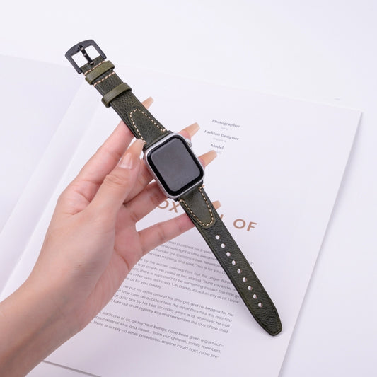 For Apple Watch 46mm / 49mm / 45mm / 44mm U-shape Genuine Leather Watch Band(Green)