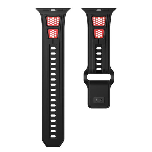 For Apple Watch 46mm / 49mm / 45mm / 44mm Dual Color Mesh Reverse Buckle Silicone Watch Band(Black Red)