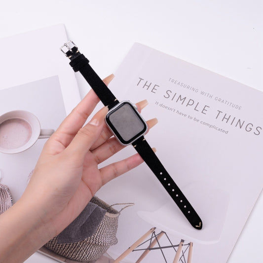 For Apple Watch 46mm / 49mm / 45mm / 44mm U-shape Genuine Leather Watch Band(Black)