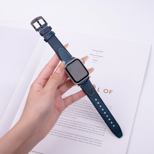 For Apple Watch 42mm / 41mm / 40mm / 38mm U-shape Genuine Leather Watch Band(Blue)