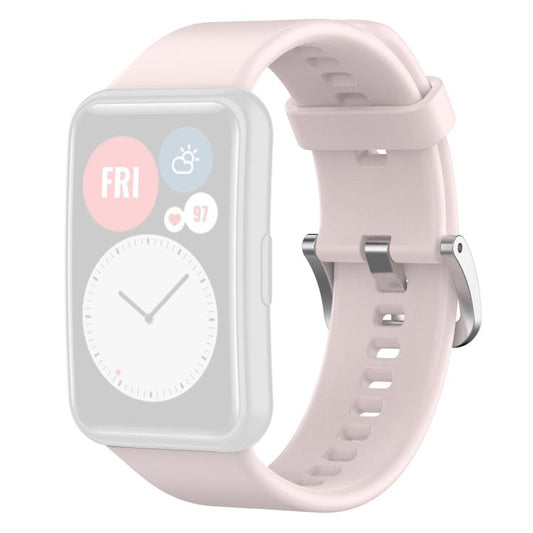 For Huawei Watch Fit New xDfind Solid Color Silver Steel Buckle Silicone Watch Band(Pink)