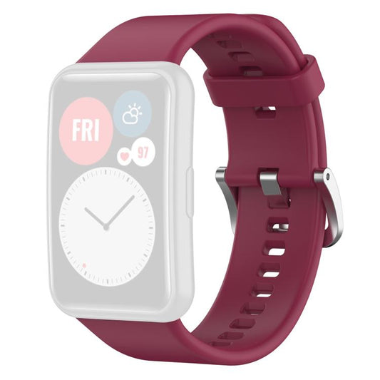 For Huawei Watch Fit New xDfind Solid Color Silver Steel Buckle Silicone Watch Band(Wine Red)
