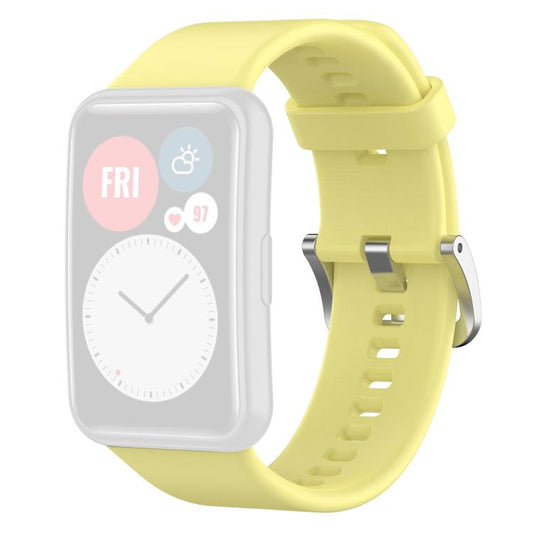 For Huawei Watch Fit New xDfind Solid Color Silver Steel Buckle Silicone Watch Band(Yellow)