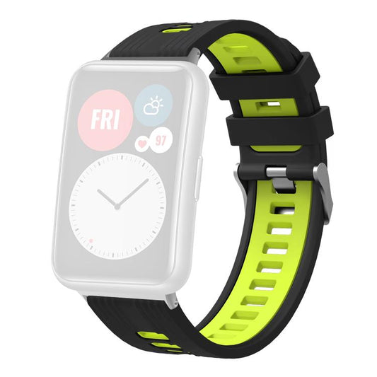 For Huawei Watch Fit New xDfind Dual Color Silver Buckle Silicone Watch Band(Black+Green)